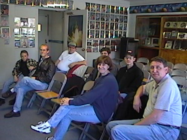 Ed Douglas is manager of the shuttle simulator and was a lot of fun to work with. We had eight people make it so we all got to do both missions. There are eight stations, four in the shuttle and four in mission control. Each mission consisted of a pre-launch, launch into orbit, reentry, and landing. Each station has several switches and lights that need to be watched and controlled at the right time according to the script and we all had head sets to communicate with each other. We all had to work together as a team to make the mission successful. Our second mission was much better than the first, with Jeremy Mathews at the controls; he was able to make a successful landing, which really helped our score. The eight that participated were, Dave Dunn, Lee and Carol Priest, Jeremy and Jason Mathews, Ken Butler, Bill Townsend and his son Dwight.